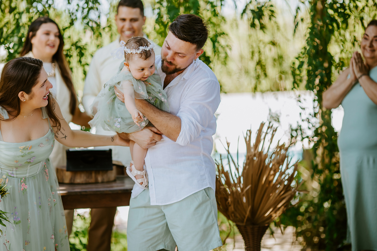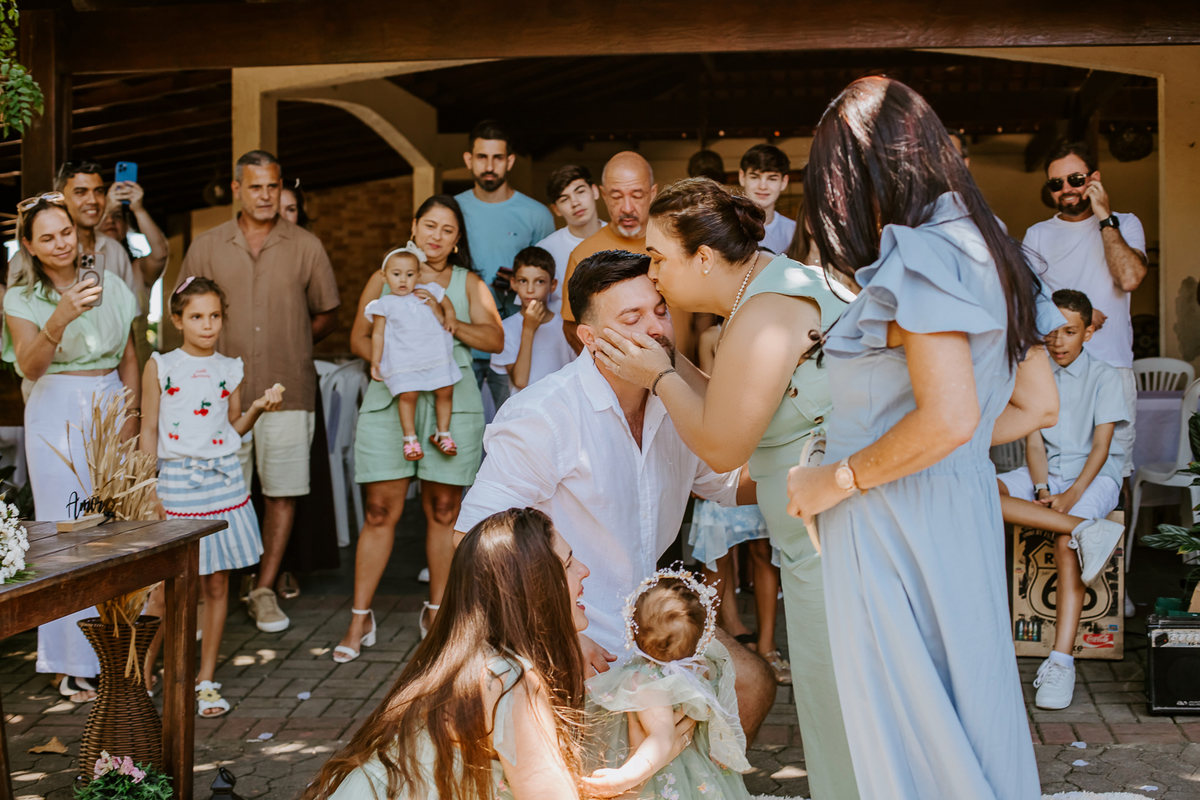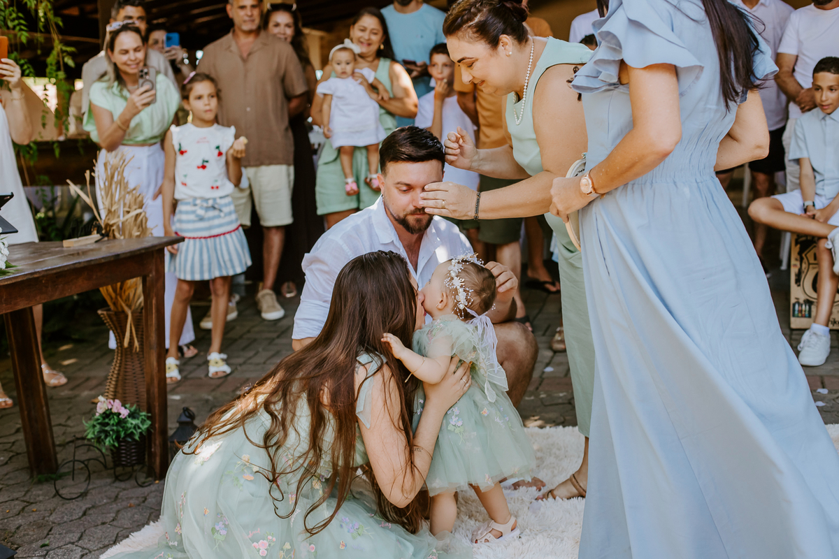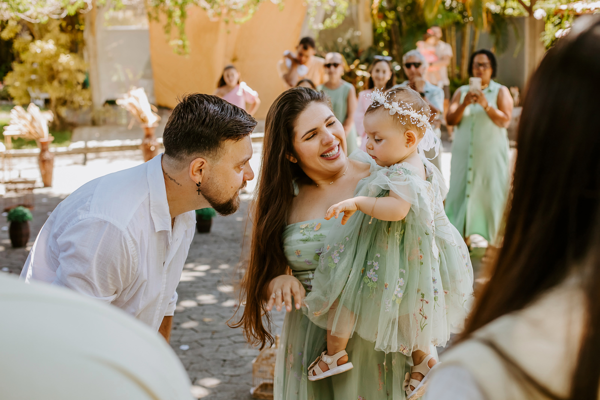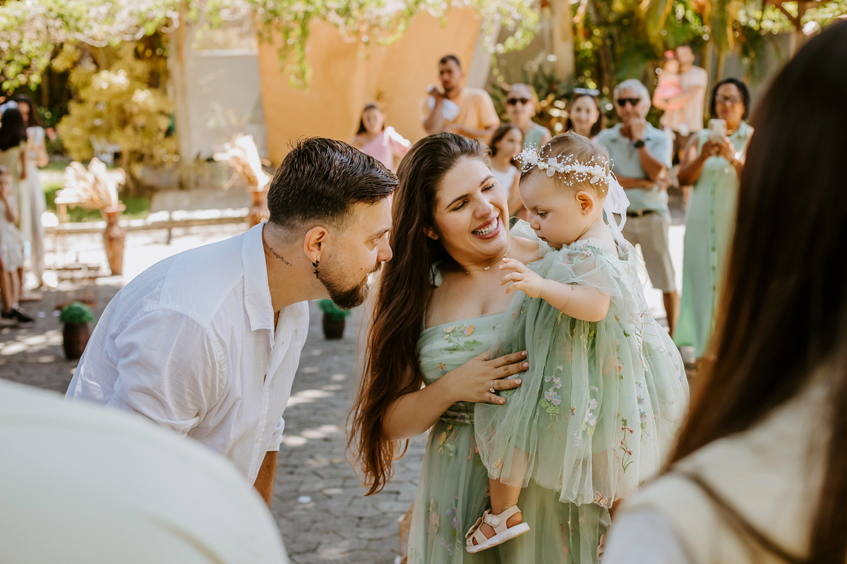 Foi um encontro de gerações, abraços apertados, risadas que ecoavam como quem sabe que aquele momento é raro e precioso. Uma celebração dupla: do amor que começou entre dois corações e do amor que ganhou forma, sorriso e olhar curioso através de uma filha.