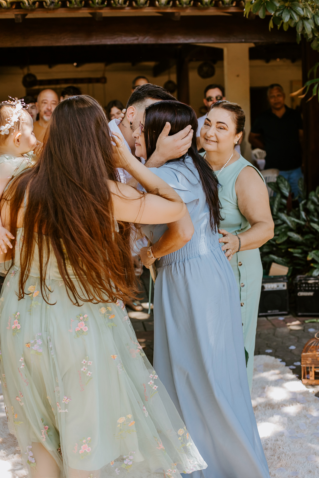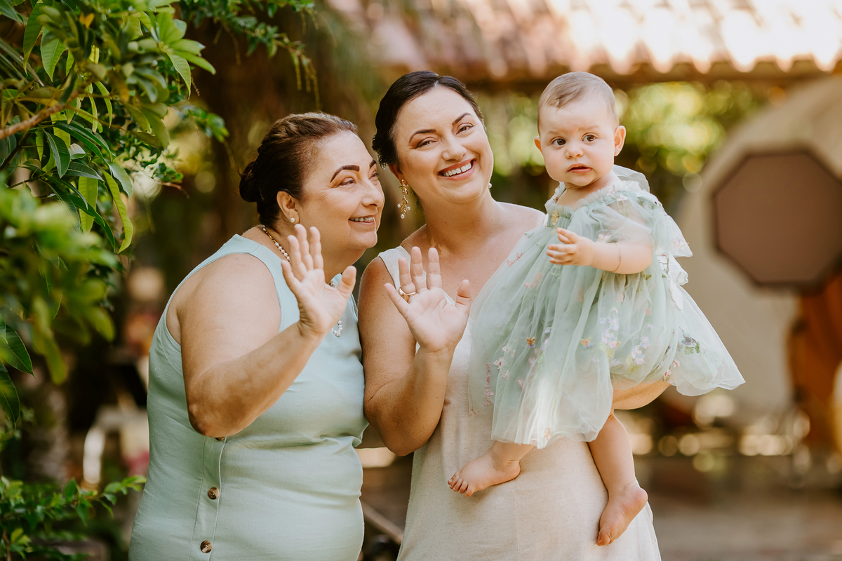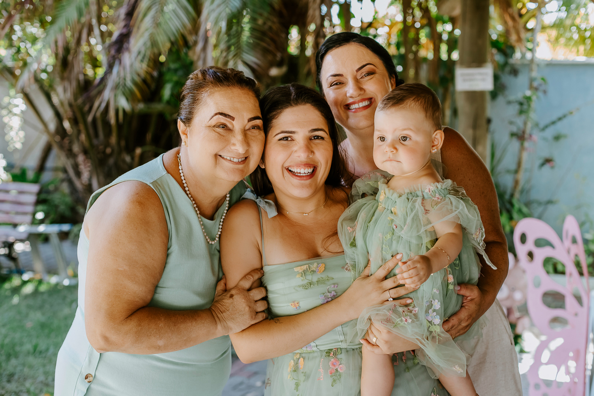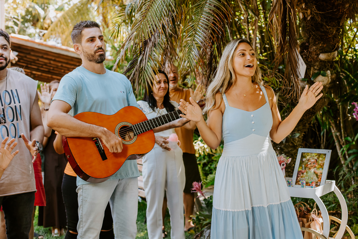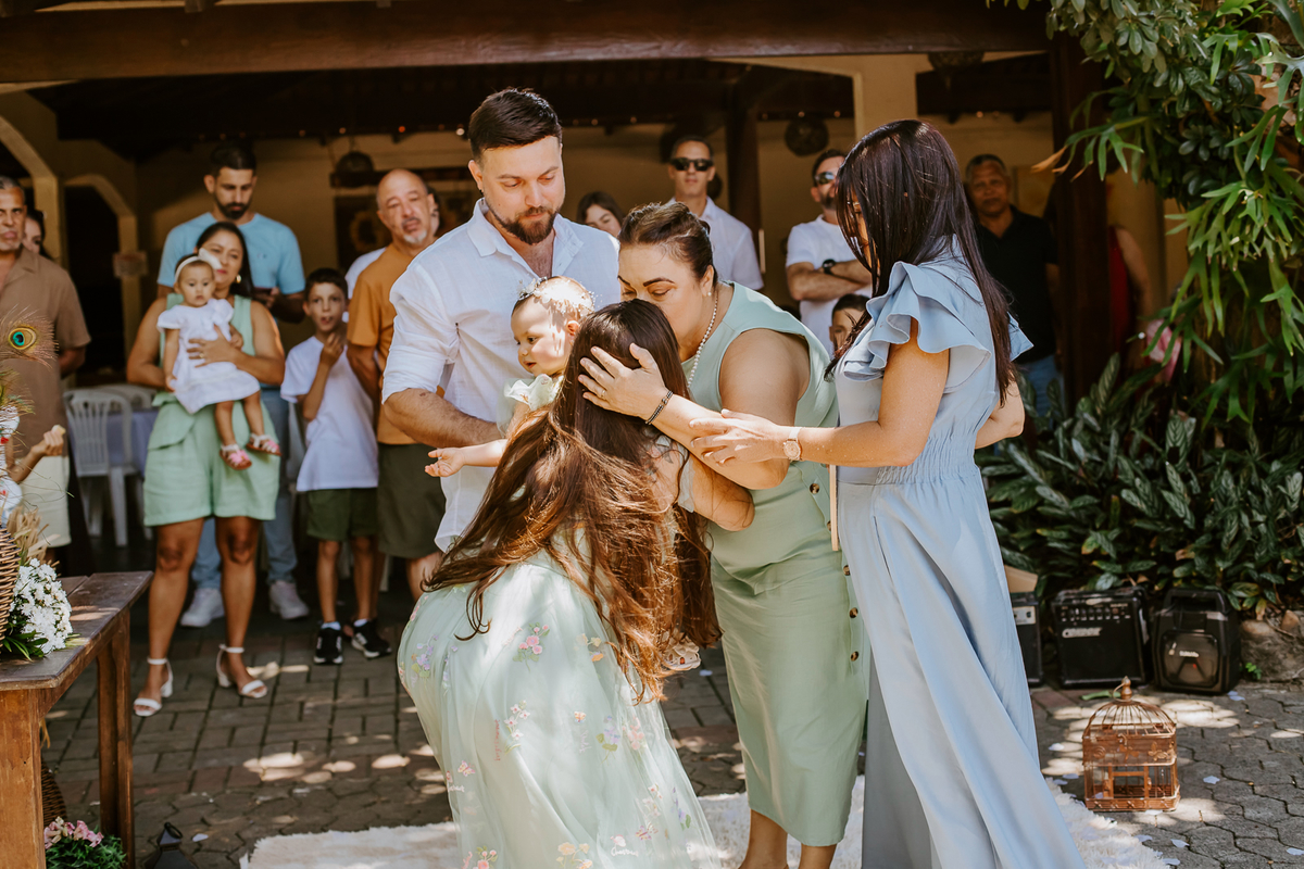 Foi um encontro de gerações, abraços apertados, risadas que ecoavam como quem sabe que aquele momento é raro e precioso. Uma celebração dupla: do amor que começou entre dois corações e do amor que ganhou forma, sorriso e olhar curioso através de uma filha.