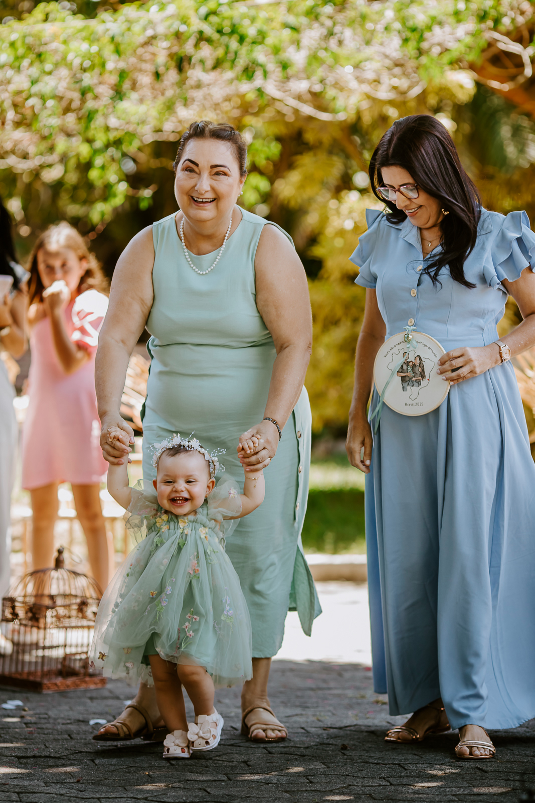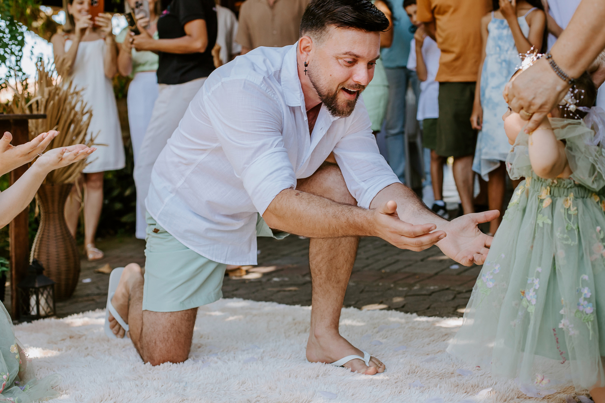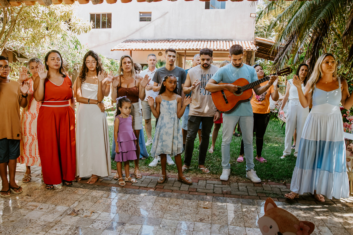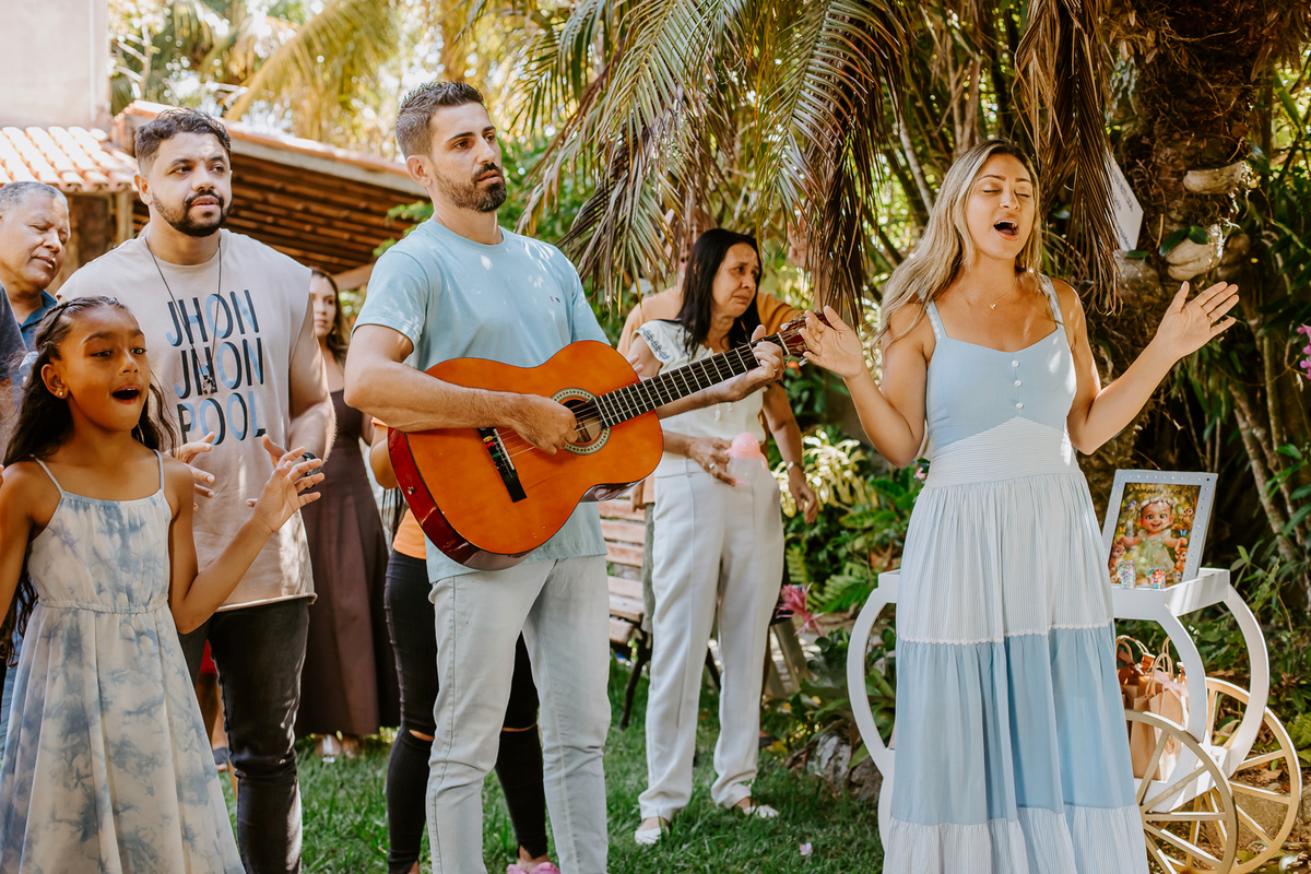 Foi um encontro de gerações, abraços apertados, risadas que ecoavam como quem sabe que aquele momento é raro e precioso. Uma celebração dupla: do amor que começou entre dois corações e do amor que ganhou forma, sorriso e olhar curioso através de uma filha.